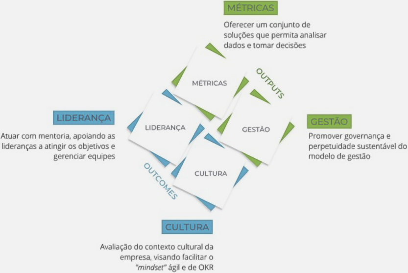 Gestor OKR lidera e apoia os processos de gestão, reportando os resultados e melhorias atingidas.
